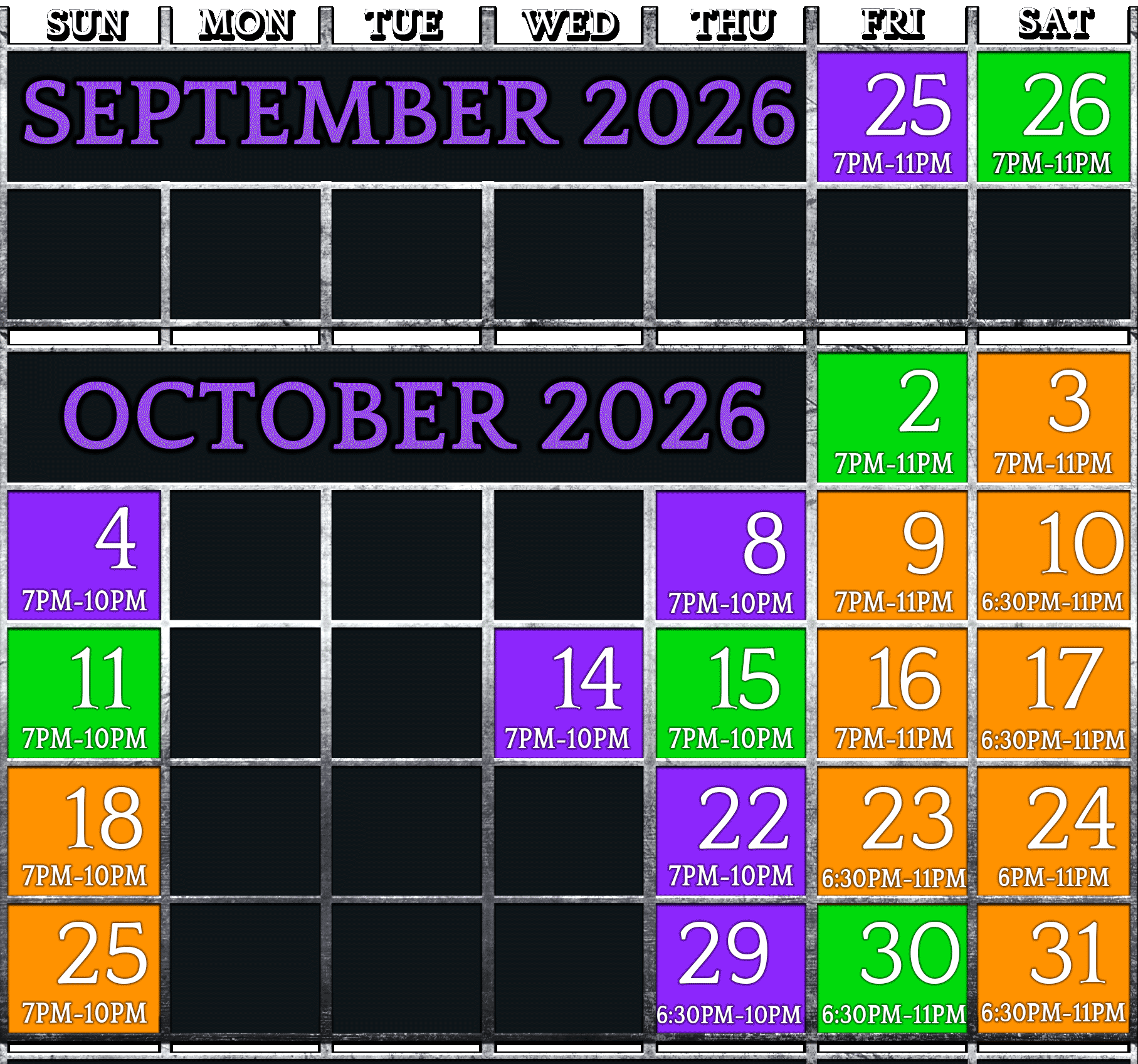 FRI & SAT Ticket Booth Closes at 10PM – Attractions at 11PM