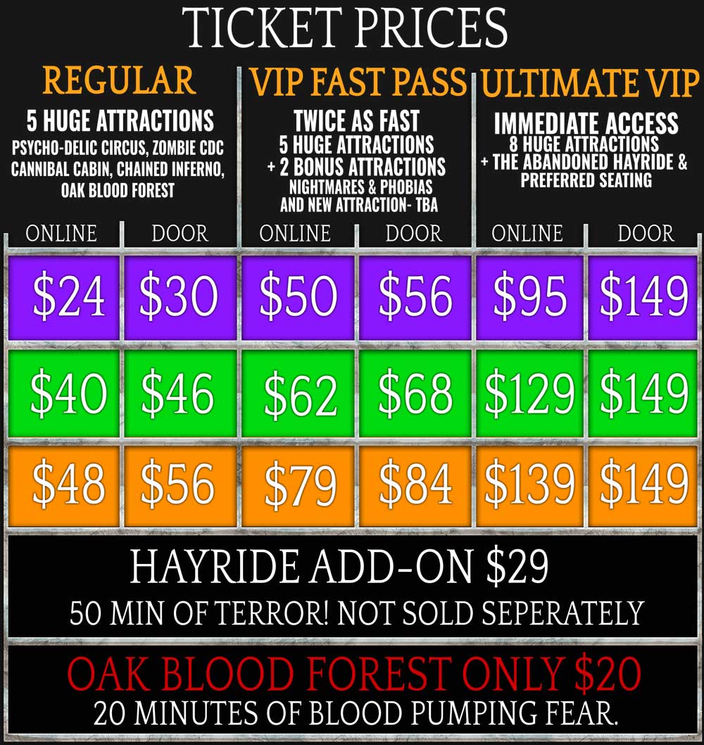 IMMEDIATE ACCESS to 7 Attractions (almost no waiting) Includes The Abandoned Hayride with preferred seating.